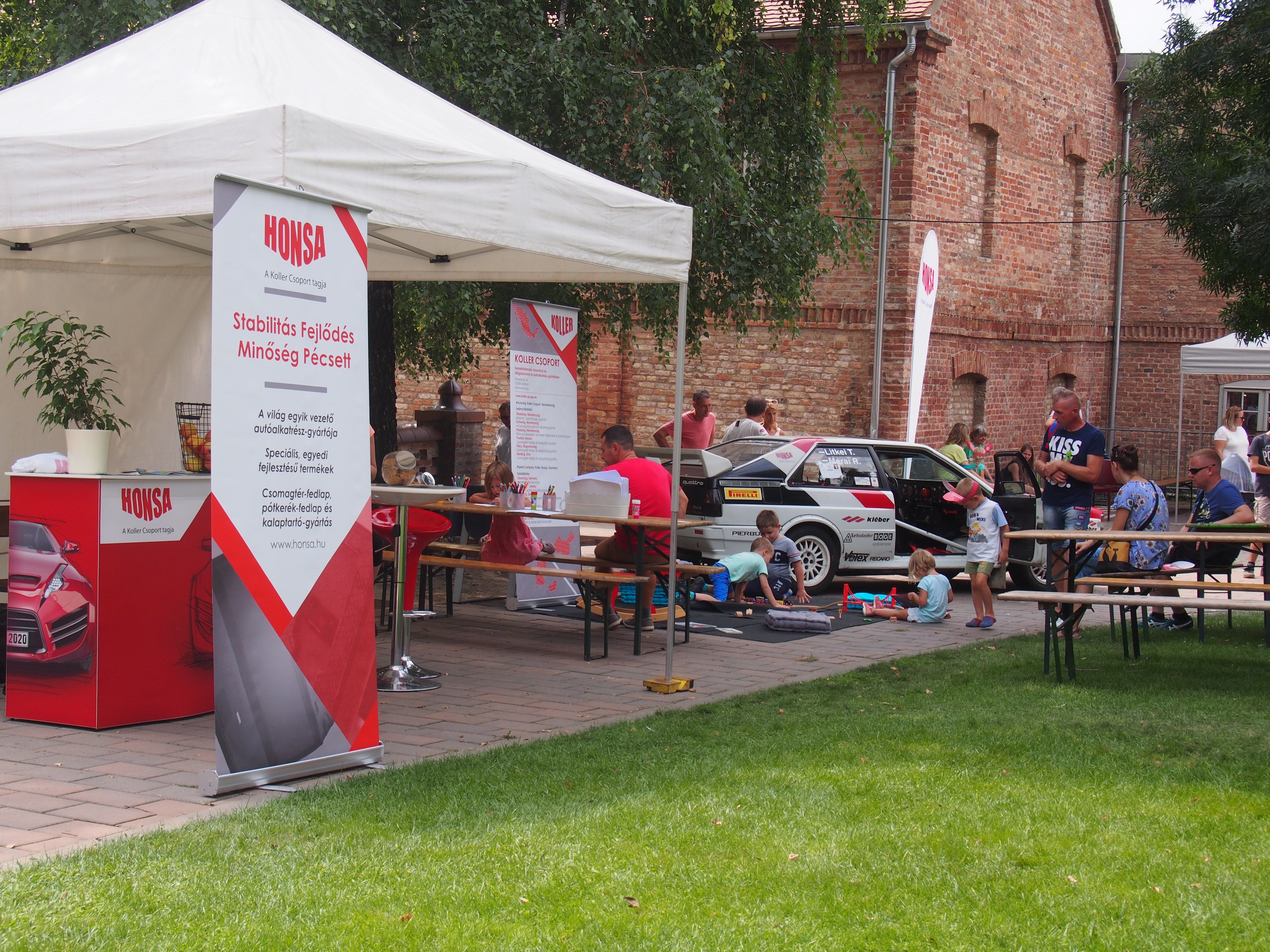 A Honsa standjánál játszószőnyeg, csomagtér-fedlap célbadobó-tábla Honsa-s kislabdával, autós színezők, csillámtetoválás és mesekönyvek, valamint hintaszarvas várta a gyerekeket. A fő attrakció azonban szponzorációs partnerünk, Mérai Róbert autóversenyző versenyautója volt, amit kívül-belül megcsodálhattak a gyerkőcök, sőt, mint az igazi autóversenyzők, akár bukósisakban a fejükön be is ülhettek a menő járgányba.